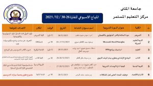 اسماء المشتركين في دورات كفاءة اللغة العربية (2120-EArb) واللغة الانكليزية (2120-EEC) والحاسوب (2120-ECC) الالكترونية للفترة 7-2021/11/11 ملاحظة: تم تعديل الرمز الالكتروني لصف كفاءة اللغة الانكليزية الى […]