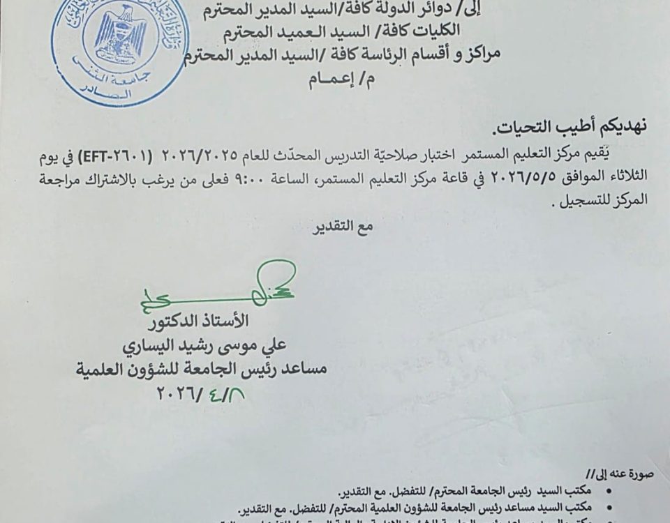 اعتماد برامج متطورة للتأهيل والتدريب للملاكات التدريسية والوظيفية لمنتسبي الجامعة للارتقاء بادائهم الوظيفي وتطبيق معايير الجودة الشاملة.